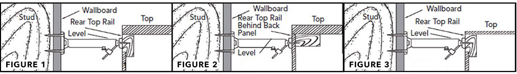 - Fasten the other tip restraint bracket to the back of your furniture. Make sure to install it in an area where the screws will contact solid wood (see image below).