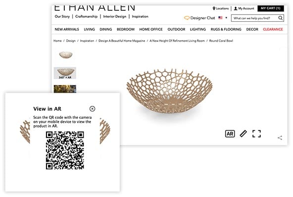 As you flip through product photos—to the left of the main image on a computer, or below on your phone or tablet—you’ll notice a 360 + AR among them. Click or tap the AR icon to launch the 3D model; on a computer, you’ll need to scan the QR code with your phone or tablet.