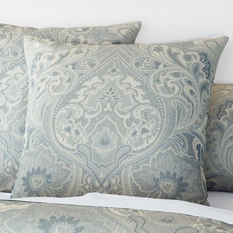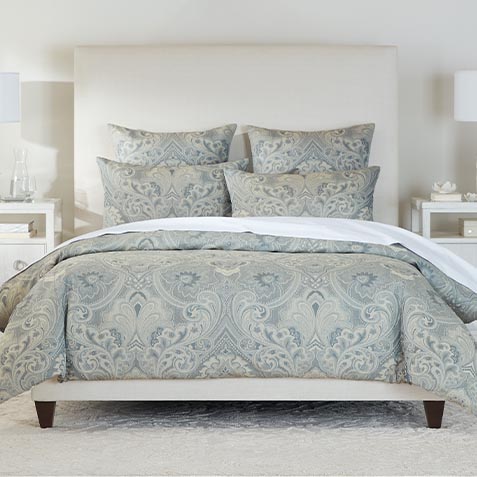 Luxurious in a formal bedroom, sweet in a cottage retreat. Our versatile Scroll Jacquard duvet cover and shams feature an eye-catching paisley pattern in a soft blue and ivory palette.