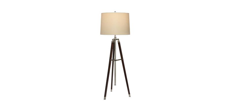 Architectural form with metropolitan attitude. The Surveyor’s floor lamp is packed with style and function – inspired by vintage tripod instruments, the antique nickel finished steel and solid wood base makes a modern statement with an oversized, eggshell paper drum shade as the perfect topper.