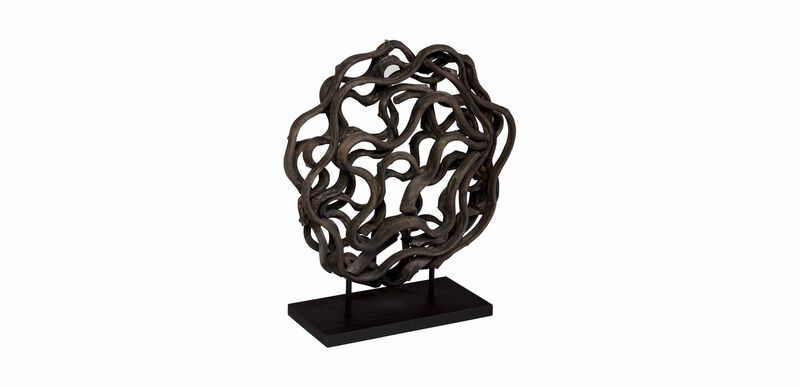 Vines like the ones that make up our Charcoal Weston sculpture sprout from tropical jungle and rainforest floors, using trees for support, spiraling toward the sun at up to three inches a day. They wrap and wind, eventually intertwining above the canopy into a soaring skyway. The vines that do make up our Weston sculpture were collected for us in Thailand by buffalo herders, who find pieces of the thick, woody plants along the paths they travel. Our artisans then combine those with the best contours and fit to create this exotic work of great texture and depth.