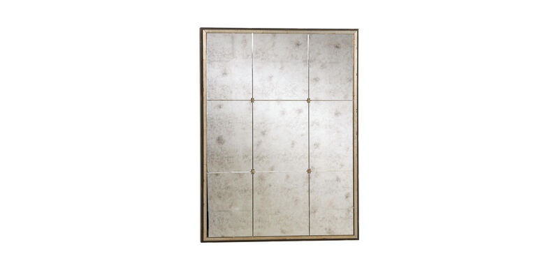A blend of old and new. Nine mirrors are antiqued by hand, made to look old by way of an old-fashioned process. Then they’re framed in clean, contemporary, solid wood that’s finished in an aged silver patina. The delicate rosettes that give this mirror its name accent each corner of the center panel. With the handwork involved, every mirror is unique.