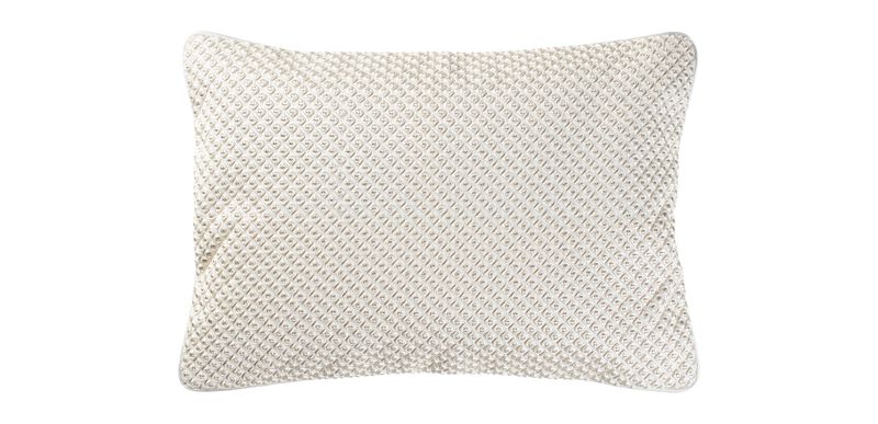 Simple texture makes a bold statement with this intricately embroidered pillow featuring a versatile knot pattern. It adds a clean, textured accent to beds and sofas of any style.