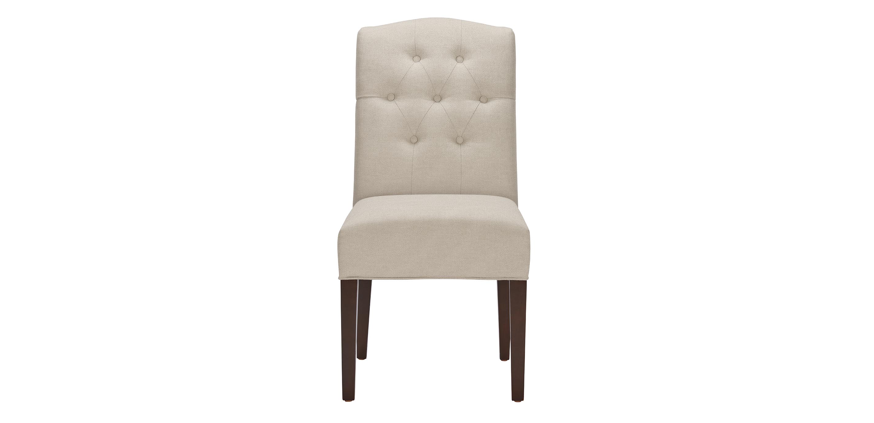 Cassian: your guest for dinner, no matter if it's formal or casual—this upholstered dining chair's subtly arched profile can go either way. Keep it casual with a smooth back and seat or dress Cassian up with optional tufting and nailhead trim.