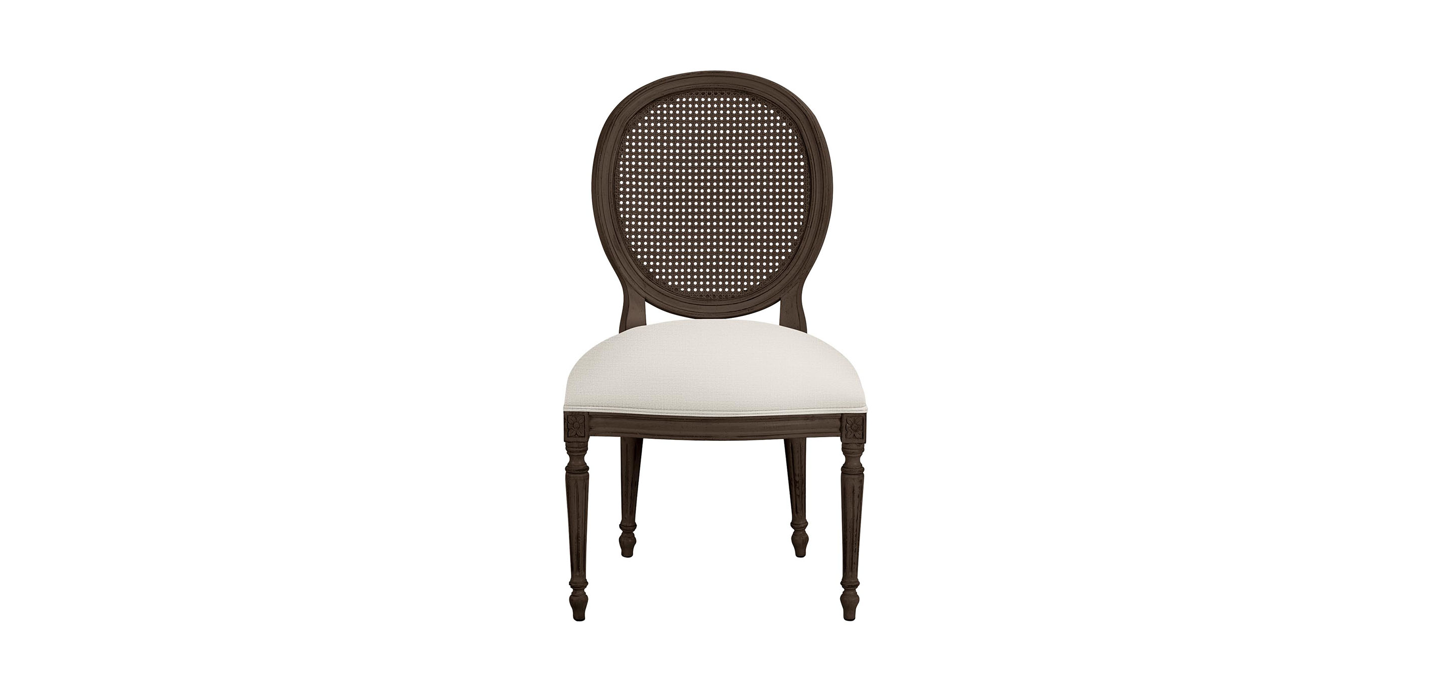 Refined without ruffles. You'll be sitting pretty on this French-inspired chair. The cane back gives the piece an air of lightness. To bring in a garden feeling, you might choose to have the cane hand-painted with a lattice pattern. With exquisite hand-detailing and double-welting.