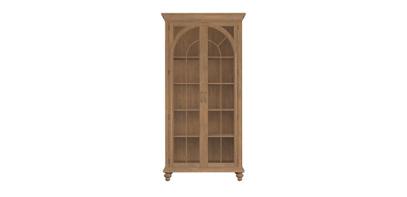 Our Zeta display cabinet is inspired by vintage window shapes and crafted with layers of molding, with curved arches that highlight its display doors. Inset pilaster carving and bun feet add even more vintage-inspired notes; tempered glass doors and internal LED lighting allow your collectibles to take center stage.