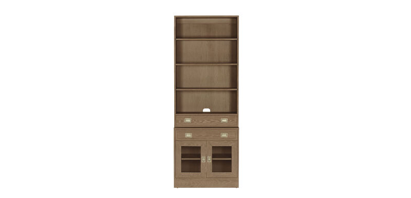 This modern take on a vintage classic gets a functional boost from a lower cabinet with your choice of wood- or glass-panel doors, and a fashionable spin from brass hardware that makes Callum's British campaign influences abundantly clear. Show off your book collection up top and use the lower space for office supplies, board games, and more.