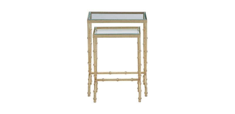 If you take your natural inspiration with a shot of glitz, then these square nesting accent tables are for you. We gave a nod to Mother Nature, mimicking the look of bamboo when we designed the curved legs on these nesting tables. Then, we applied gold foil by hand for a splash of glamour and added a glass tabletop for some sparkle and shine.