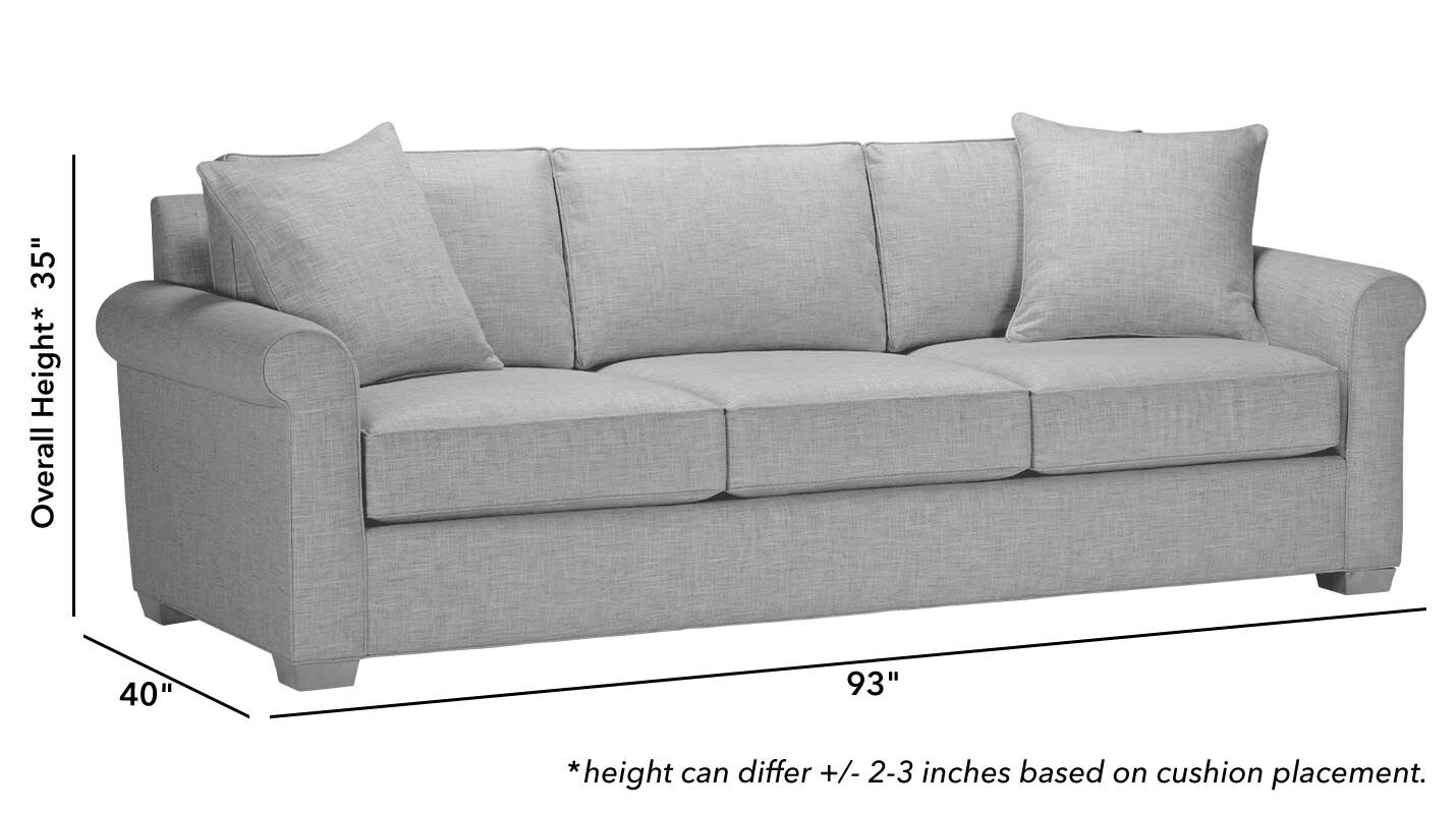 - Packaged weight: 75" sofa: 179 lbs.; 85" sofa: 209 lbs.; 93" sofa: 231 lbs.; 103" sofa: 250 lbs.; 85" sleeper: 268 lbs.