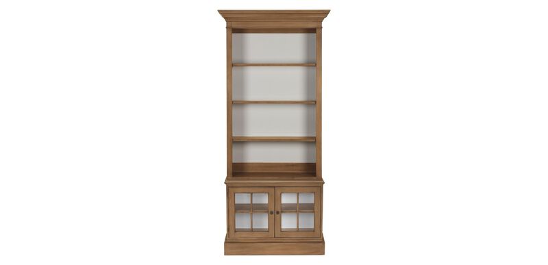 Give your book collection its due with our Villa library bookcase while expanding your storage options with base cabinets below. Choose glass or wood doors (in Design Centers).