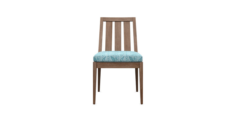 Take a seat in the sleek styling of our Bridgewater Cove teak dining chair. Featuring a unique narrowing slat back, tapered details, and an amply sized seat with durable, comfortable cushions, it brings a distinct modern vibe to your outdoors. Coordinate it with our Bridgewater Cove dining table and armchairs for a stand-out alfresco dining style—or bring it indoors! Its sophisticated design is easy to mix and match!