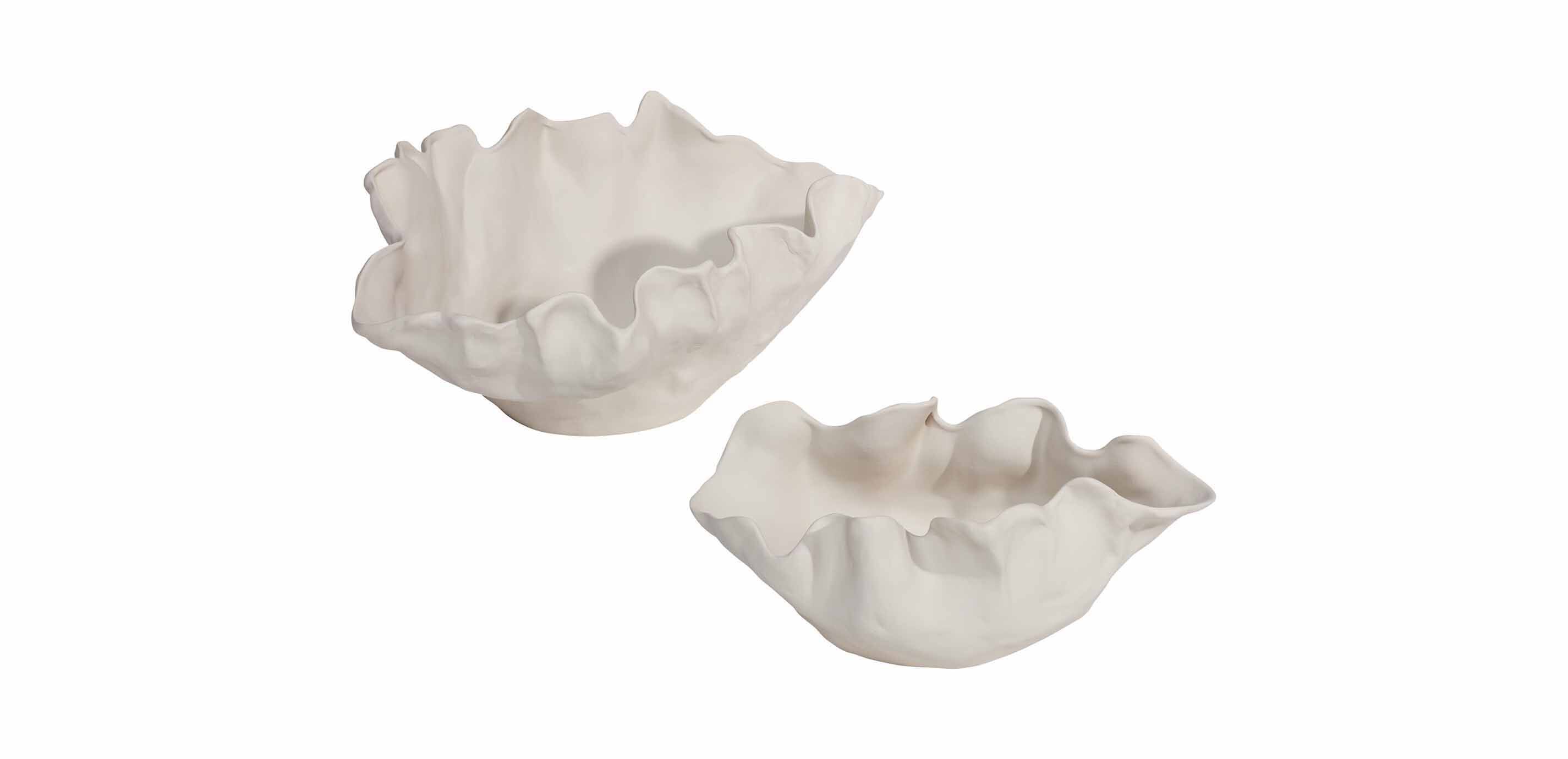Inspired by natural forms and sculpted entirely by hand, the Mattea bowl will steal the spotlight in any room. Each piece is made in a Northern Italian workshop known for the beauty and quality of its ceramics. While each bowl has a similar intriguing organic shape and ivory matte finish, no two are exactly alike. Choose large or small (or both) to add a little understated drama to your home.