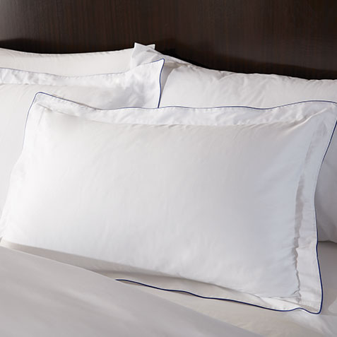 - Pillow shams: set of two, with 2" flange and colored piping on all four sides. Envelope closure.