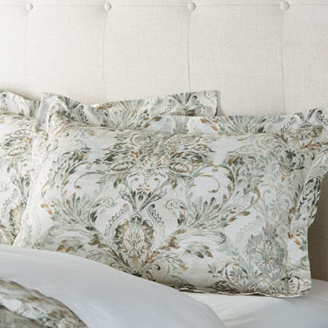 Transform your sanctuary into a Tuscan villa with our Travale duvet cover and shams; the large-scale pattern, an homage to vintage block prints, features vibrant pops of cypress green and honey gold. The textured ground—the hand is linen-like, but the composition is 100% easy-care cotton—suggests tea stain and stucco. A beautifully detailed work of art.