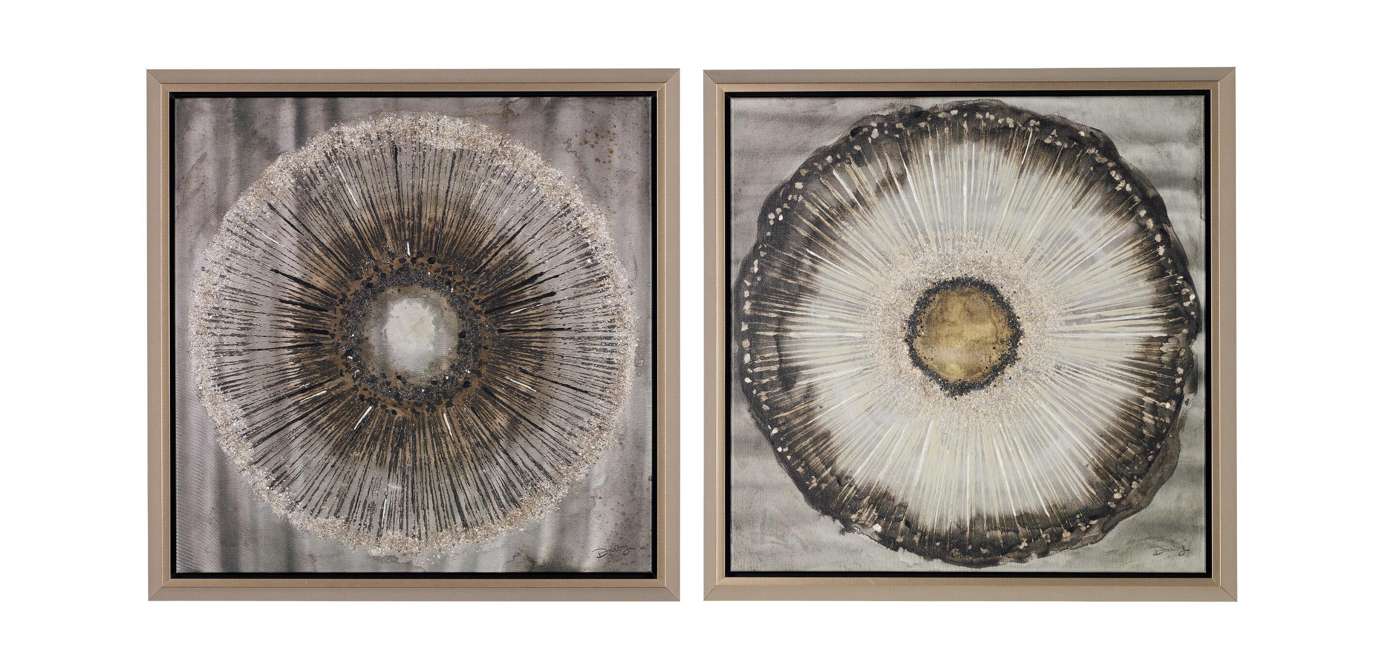 - Floated in a solid wood frame with a champagne-tone finish
