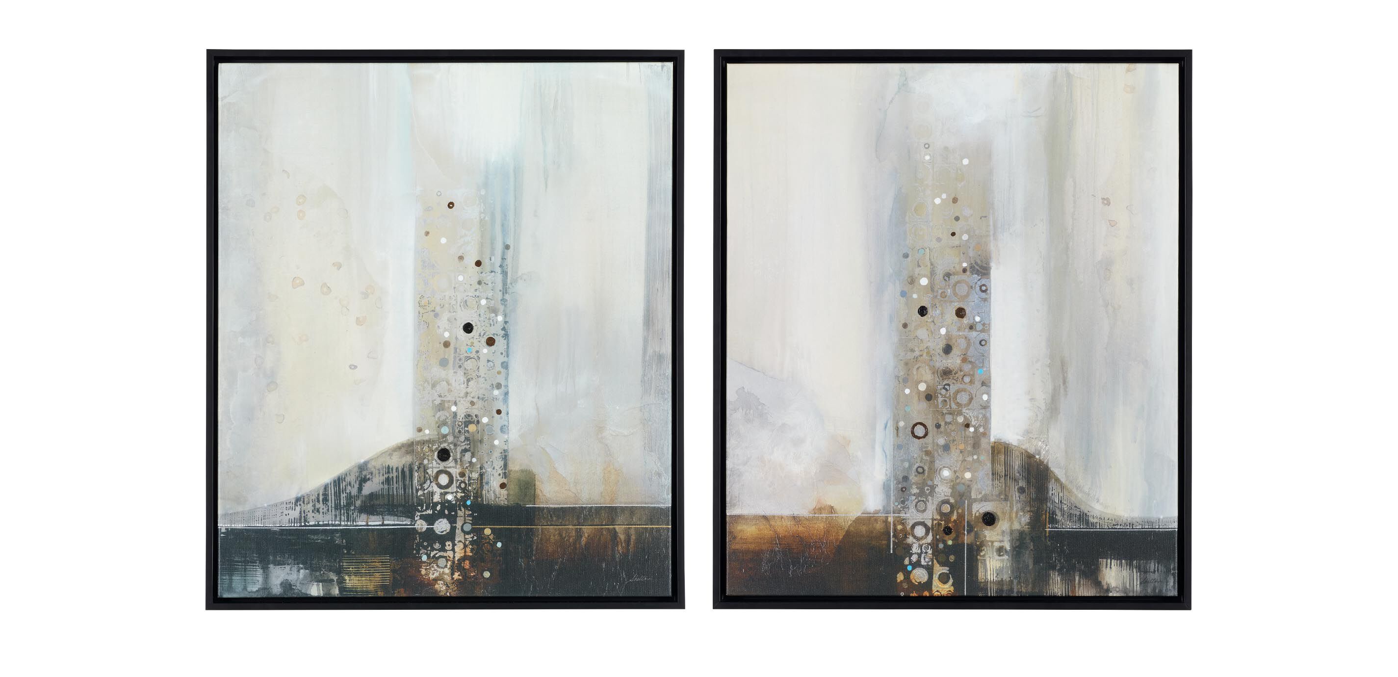 Meet The Gap: a moody landscape painting interrupted by a modern, abstract column of pixelated dots. With its industrial vibes, it's a striking conversation piece for any room—how do you interpret it?
