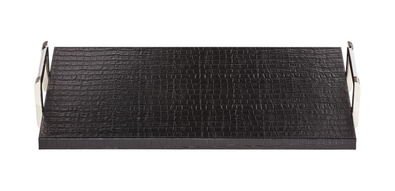 - Crocodile print black leather tray with ribbed nickel-finished handles