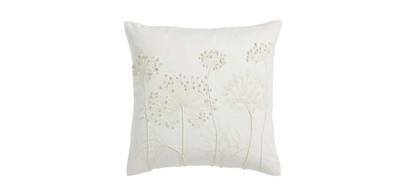 Floral stems rendered in French knot embroidery remain in perpetual bloom. Set against a textured cotton fabric, this knotted pillow is richly tactile. This exclusive design in tonal ivory has an elegant and organic look that adds a lovely, year-round accent to your décor.