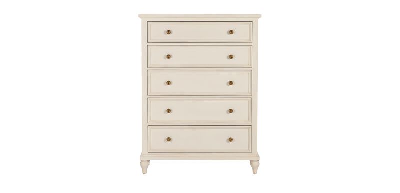 • Five drawers with soft-closing slides; detailed molding around drawer fronts