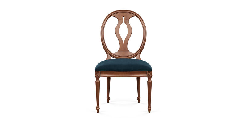 Gracieuse et graphique. Notre chaise d'influence suédoise apporte un design classique et contemporain pour une expérience de salle à manger actuelle. Bien conçue avec ses rosaces sculptées et ses pieds cannelés, son dossier sculpté est légèrement courbé pour asseoir famille et amis confortablement. Choisissez une finition personnalisée, et nous la créerons pour vous.