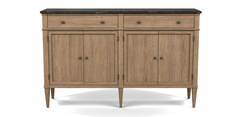 A buffet of uncommon elegance. Crafted from oak, the Cressida offers ample storage and delightful details, such as subtly recessed door panels and airy tapered legs, that make all the difference. Available in a great range of finishes, the buffet comes with a wood top or a honed bluestone top. Also see the Cressida Server.