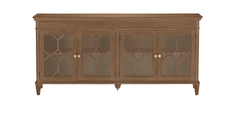 We took a classic Chippendale fretwork pattern and gave it a modern twist to create the striking doors of our Tristan buffet cabinet. Timeless molding details and tapered legs give it classic appeal; octagonal hardware adds art deco-inspired detail.