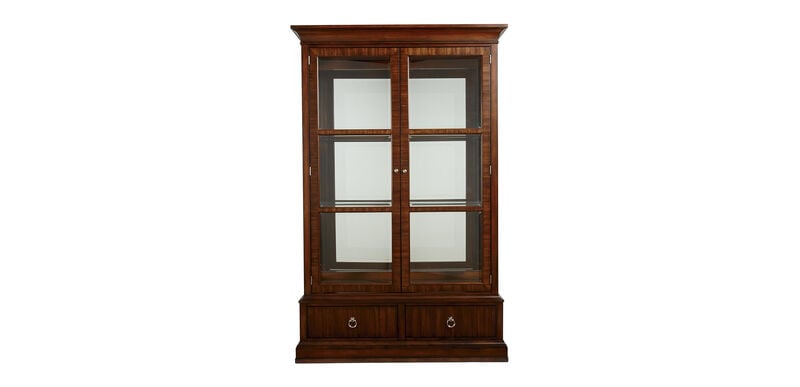 Une étoile est née. Inspirés par le luxe raffiné du passé, ses accents haute couture vont certainement résister au passage du temps. Les portes en verre biseauté s’ouvrent pour révéler deux tablettes en verre insérées devant un panneau arrière tout en miroir. Les panneaux latéraux en verre biseauté et le rétroéclairage au rhéostat mettent en valeur le contenu à la manière d’une galerie. Deux tiroirs inférieurs offrent un espace de rangement masqué pour l’argenterie et les linges de table.