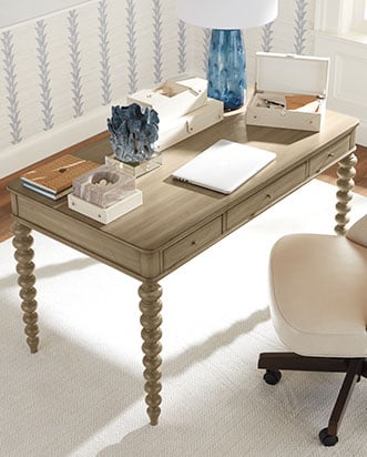 • Home office desk: A desk is the focal point and functional hub of your home office. You’ll need enough room to comfortably complete daily tasks, such as working on your computer and taking notes. Want a desk that’s completely customized to you? Click here to design a desk and have it made to order.