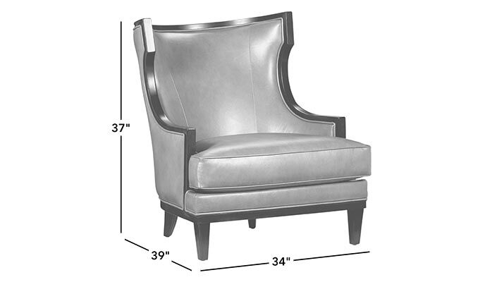 - A wing chair with Klismos design and a contoured tight back and loose welted seat cushions