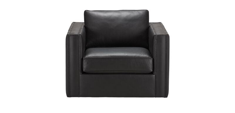 - Inviting, oversized leather square-arm swivel chair with channel-stitched exterior. Select 39" or 42" sizes.