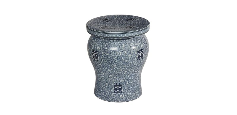 Keep this hand-stamped porcelain stool at your side while you find your joy. Whether you're dining alfresco or enjoying the serene sounds of nature, gaze upon this stool featuring the Chinese ornamental calligraphy for "double happiness."