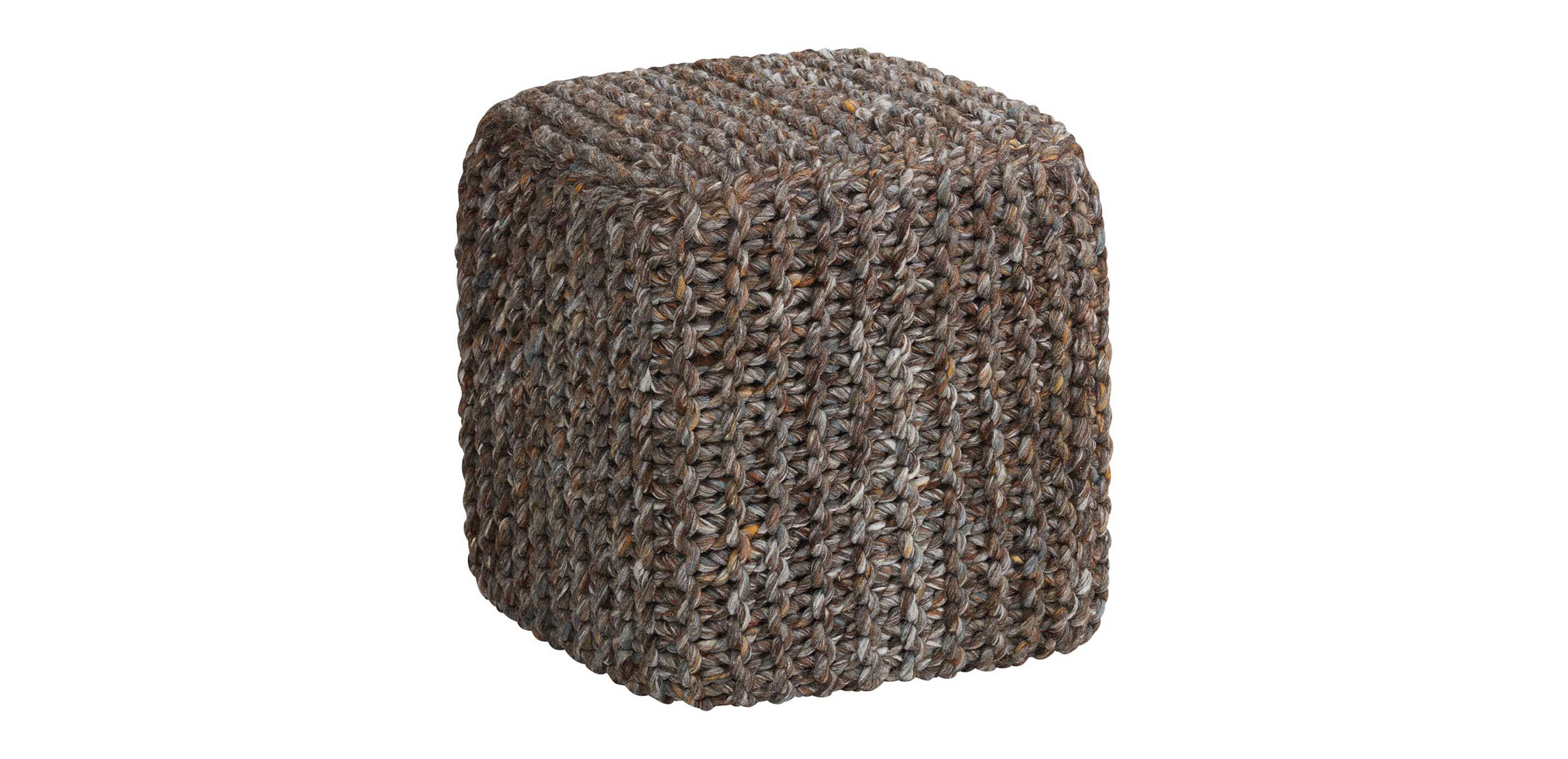 Warm wool is just the thing for cold feet that are beat after a long day. Put yours up on our new pouf, made even more inviting with this natural, knitted covering. Its neutral tones are sure to cozy up any space.