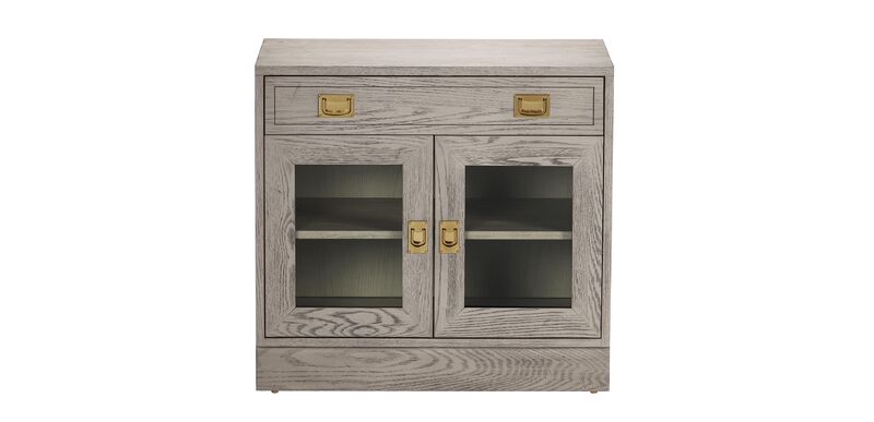This campaign-inspired two-door cabinet can add storage to your home office or be repurposed for a hallway or entryway. Select wood or glass doors depending on whether you want to keep the contents discreet.