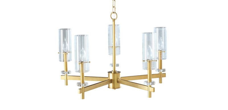 Treat yourself to something chic in your home office, reading nook, and more; the smallest version of our Tiberius chandelier is the perfect choice for cozy-but-glamorous spaces. Each chandelier is made with ribbed glass shades for extra sparkle.