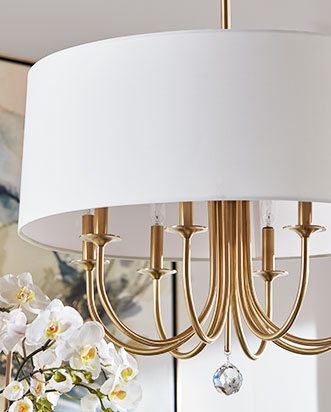 • Our popular take on midcentury lighting silhouettes, with drum shades, metallic frames, and crystal details.