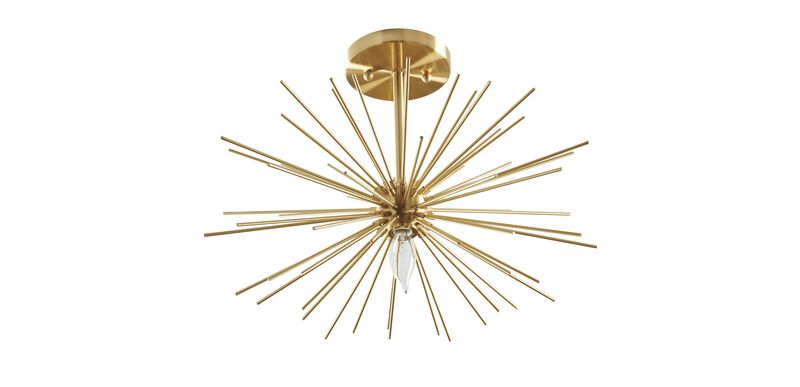 Switch on our Starburst brass ceiling light, with its mini Sputnik design and semi-flush mount, and you'll bathe even the smallest spaces with dazzle and glam. Hang it solo or in groups; it's perfect for hallways, recessed nooks, and low ceilings.