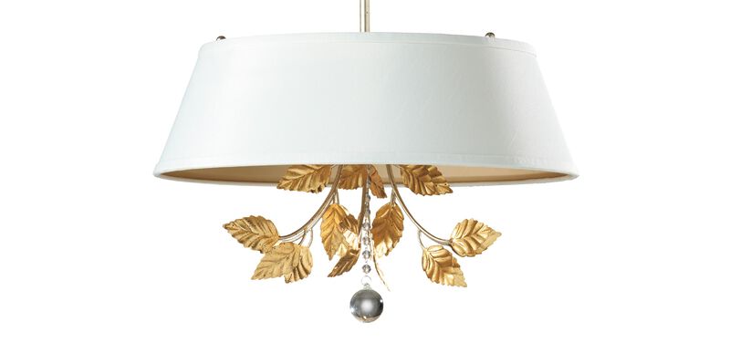 Our Tilda pendant's elegant silhouette is our reinterpretation of art nouveau chandeliers. Artisans hand-carve the details of each leaf, then apply an antique finish. Each pendant is finished with a drop crystal detail, as well as a shade with a cream-colored reflective interior; use its three rod lengths to choose how low it hangs from your ceiling.
