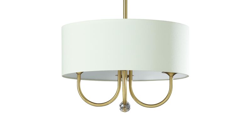 - Midcentury-inspired drum pendant light with swooping arms and a beautiful crystal drop detail