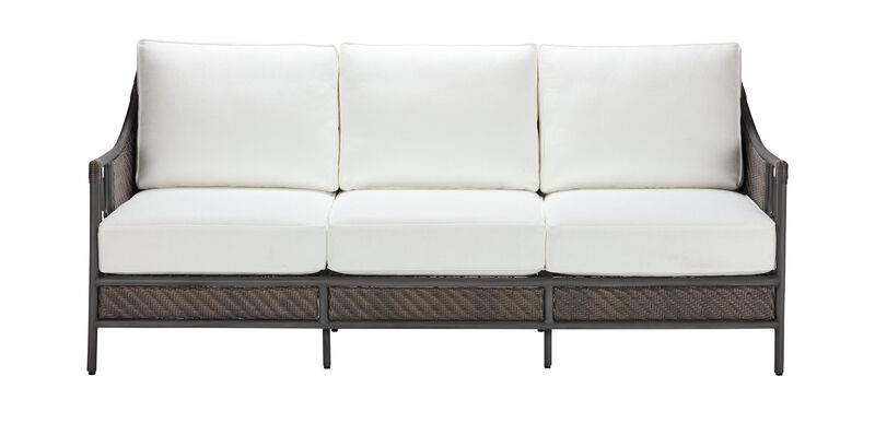Our Cape Monaco outdoor sofa brings the luxury resort to you. Place it in the sunroom or beside the pool; its powder-coated aluminum frame is so easy to clean, and its woven rattan inserts add an essence of Mediterranean beauty. Complete the look with cushions tailored by hand in your favorite fabric.